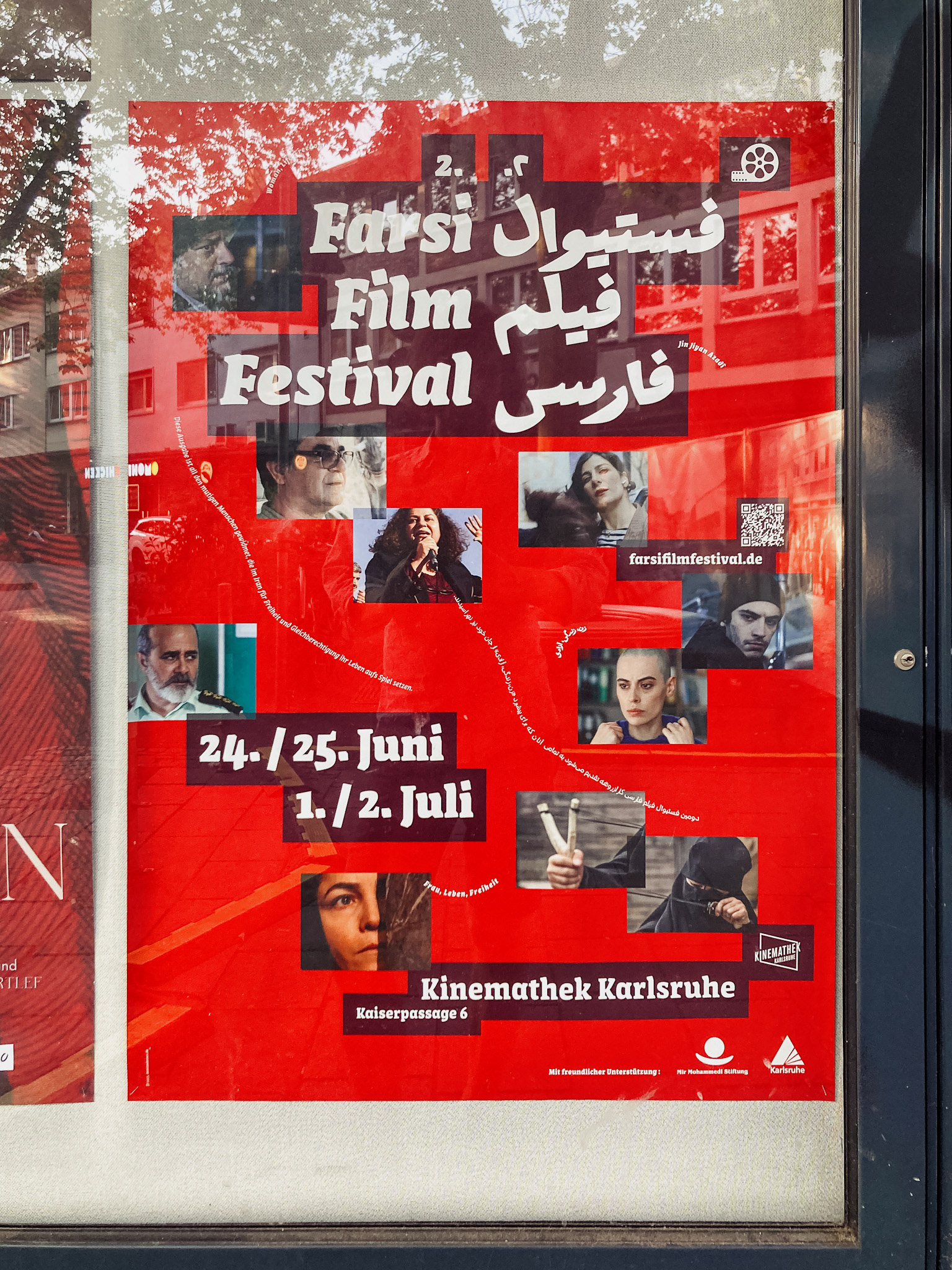 Graphic identity for the Farsi Film Festival Karlsruhe. The edition focuses on the current freedom movement in Iran.